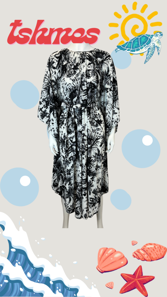 فستان قصير قطن لكي تميّزي بإطلالة ناعمة ومفعمة بالحيوية ، الذي يجمع بين الأناقة والراحة, تصميمه الجذاب ونقوشه النباتية تضيف لمسة أنثوية مثالية لأي وقت من اليوم.
